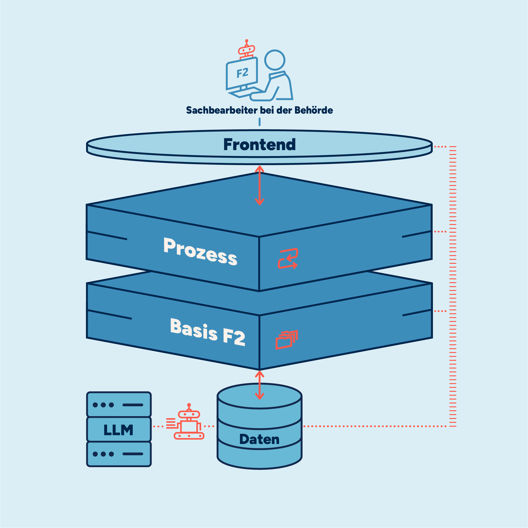 Die gesamte Architektur gewährleistet die Datenkontrolle und macht F2 AI Assistant benutzerfreundlicher und effizienter.
